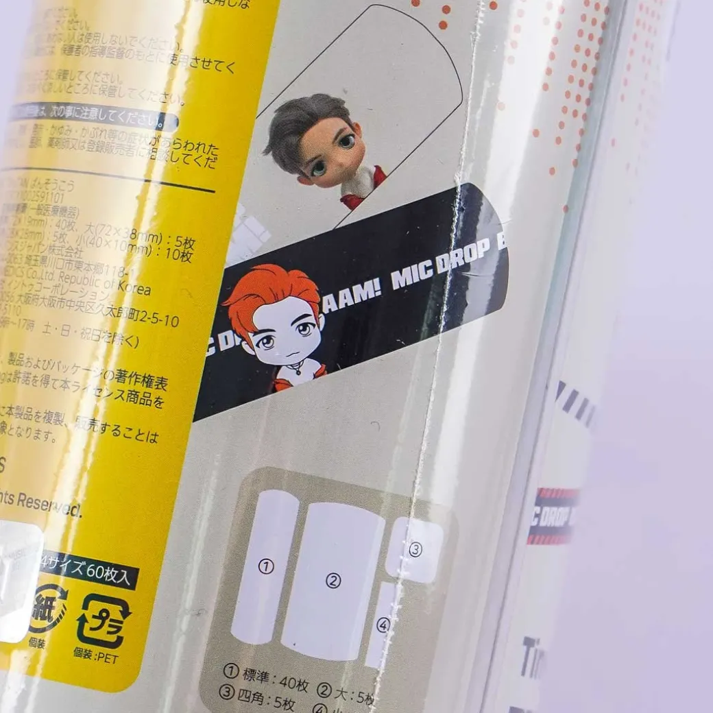 - A set of cute bandages with prints of the TinyTAN MIC Drop version of BTS’ RM