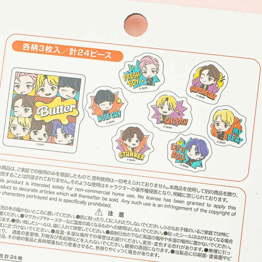 - A kawaii set of die-cut stickers with a matching pouch featuring the BTS’ TinyTAN Butter MV version
