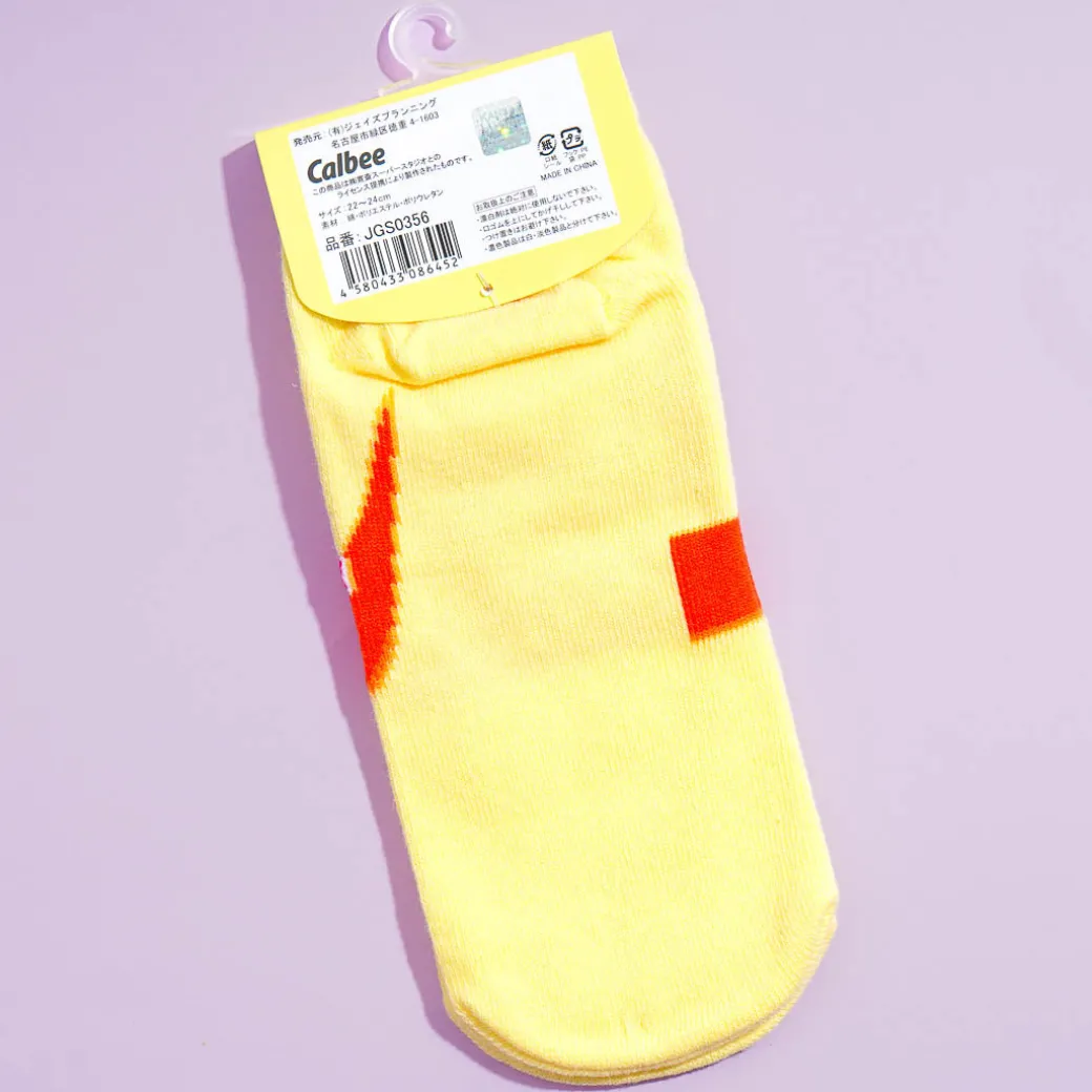 Always look cute and comfy by wearing these socks! They look like the packaging of consomme punch – flavored Calbee Potato Chips.