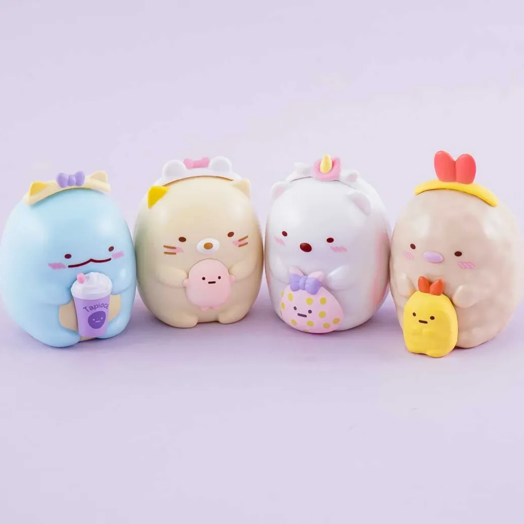 Have a fun time collecting the mini-figures from the “Capchara Sumikko Gurashi Tapioca Park Vol. 5” series. Each capsule features a small Sumikko Gurashi character collectible wearing a headband and holds either a drink or a plushie. You can collect all four kawaii designs from this series! Gachapon vending machines are widely popular and can be seen everywhere in Japan. They dispense super cute Japanese collectible items placed inside a Gachapon capsule. The fun part is you don’t know exactly what you’re going to get! Experience the thrill of a Japanese toy vending machine with this limited-edition Sumikko Gurashi Tapioca Park capsule toy! You’ll receive a random one just like in real Gachapon games! A gachapon capsule with a cute character collectible from the Capchara Sumikko Gurashi Tapioca Park Vol. 5 series Limited-edition Receive one random Sumikko Gurashi mini figure when you order. Collect all 4 designs! Different designs available: Tokage, Neko, Shirokuma, and Tonkatsu Original licensed product from San-x Japan, Made by Bandai