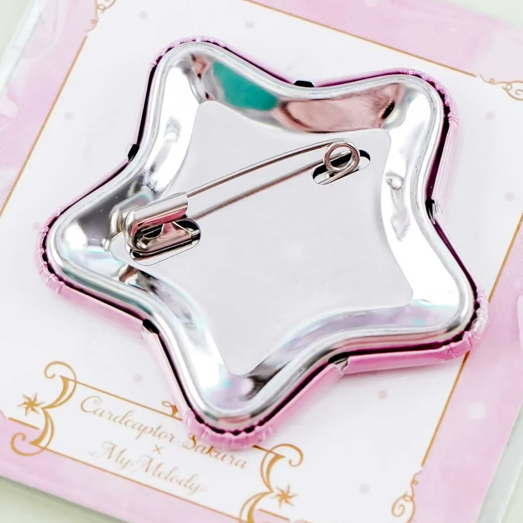 - A star-shaped pin featuring cute illustrations of My Melody and Cardcaptor Sakura