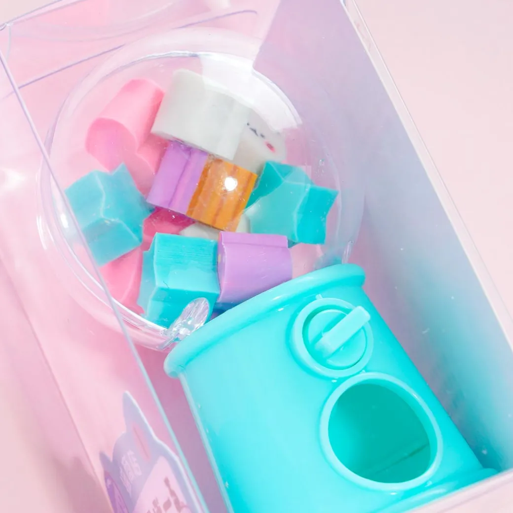 Kawaii-fy your desk with this super cute eraser dispenser that looks like a mini gumball machine! Simply twist the knob to dispense the kawaii erasers inside!