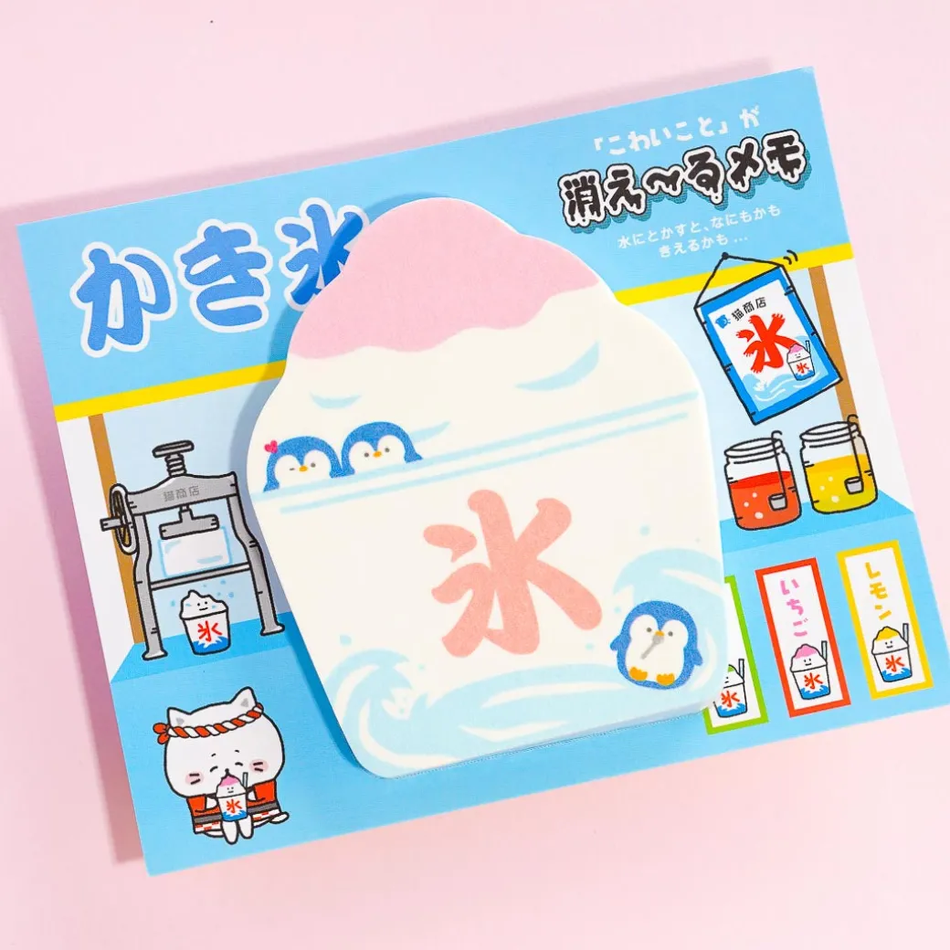 Scribble funny jokes on this cute memo sheet, dip it in water, and watch as the message magically disappears! This kawaii pad is shaped like a cup of kakigori or Japanese shaved ice dessert and also comes with regular paper sheets.
