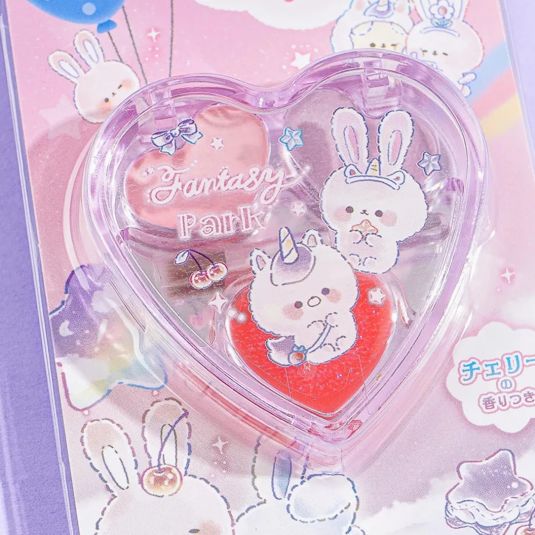 Use this makeup palette to kawaii-fy your look! It includes two pans of cherry-scented cream eyeshadows and a pan of glittery lip gloss. It’s easy to use and remove with soap and water, and is safe for kids!