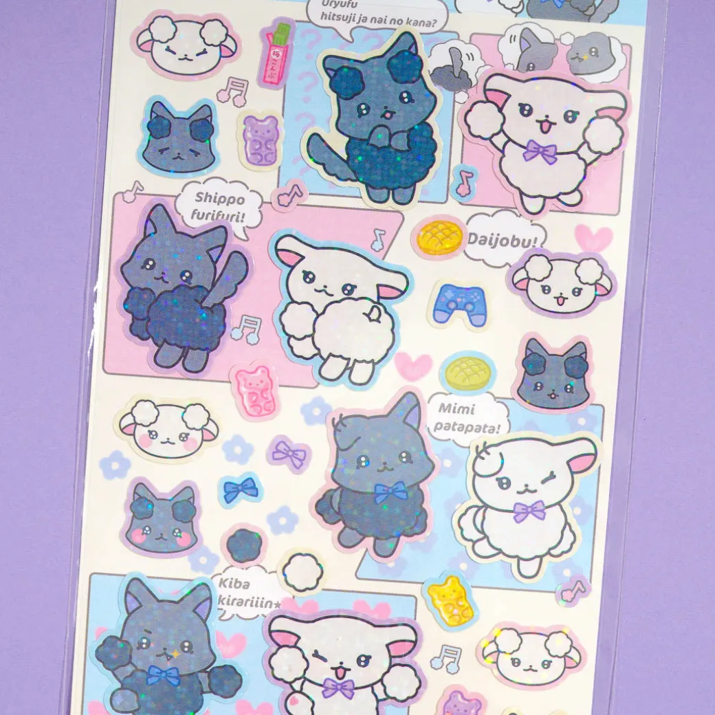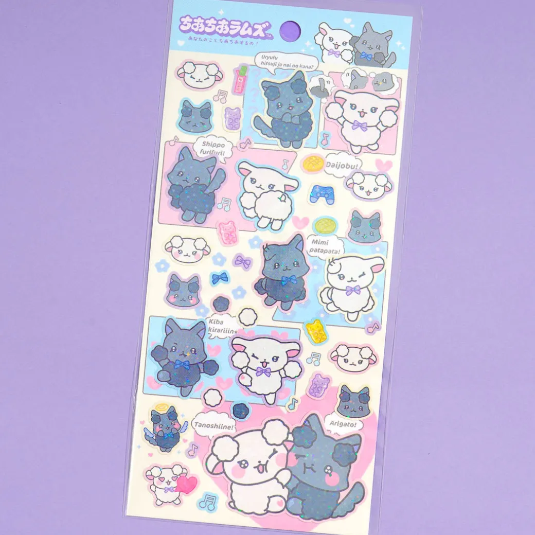 This super cute sheet of stickers showcases the Chiachia Rams from San-X! Use them to kawaii-fy your favorite notebooks. Each sticker has a lovely, glittery sheen.