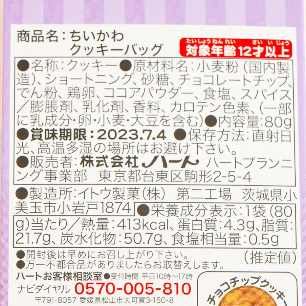 Give this special cookie bag as a present on your BFF’s birthday! These are filled with yummy chocolate chip cookies! The box-shaped bag is also decorated with illustrations of Chiikawa characters.