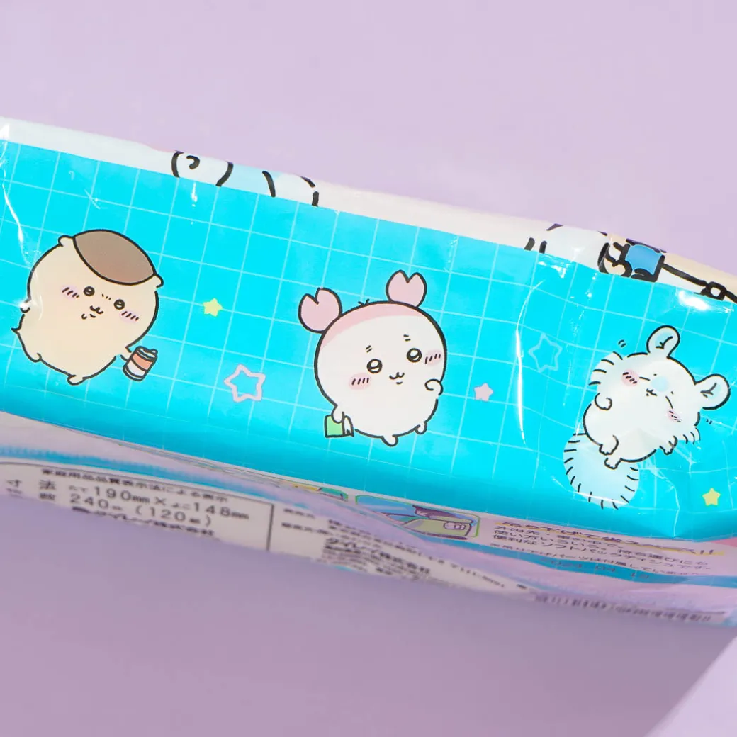 Take this pack of tissue paper with you while you’re out traveling with your kawaii buddies. It features prints of Chiikawa and his friends. Use it to dry your hands after washing them!