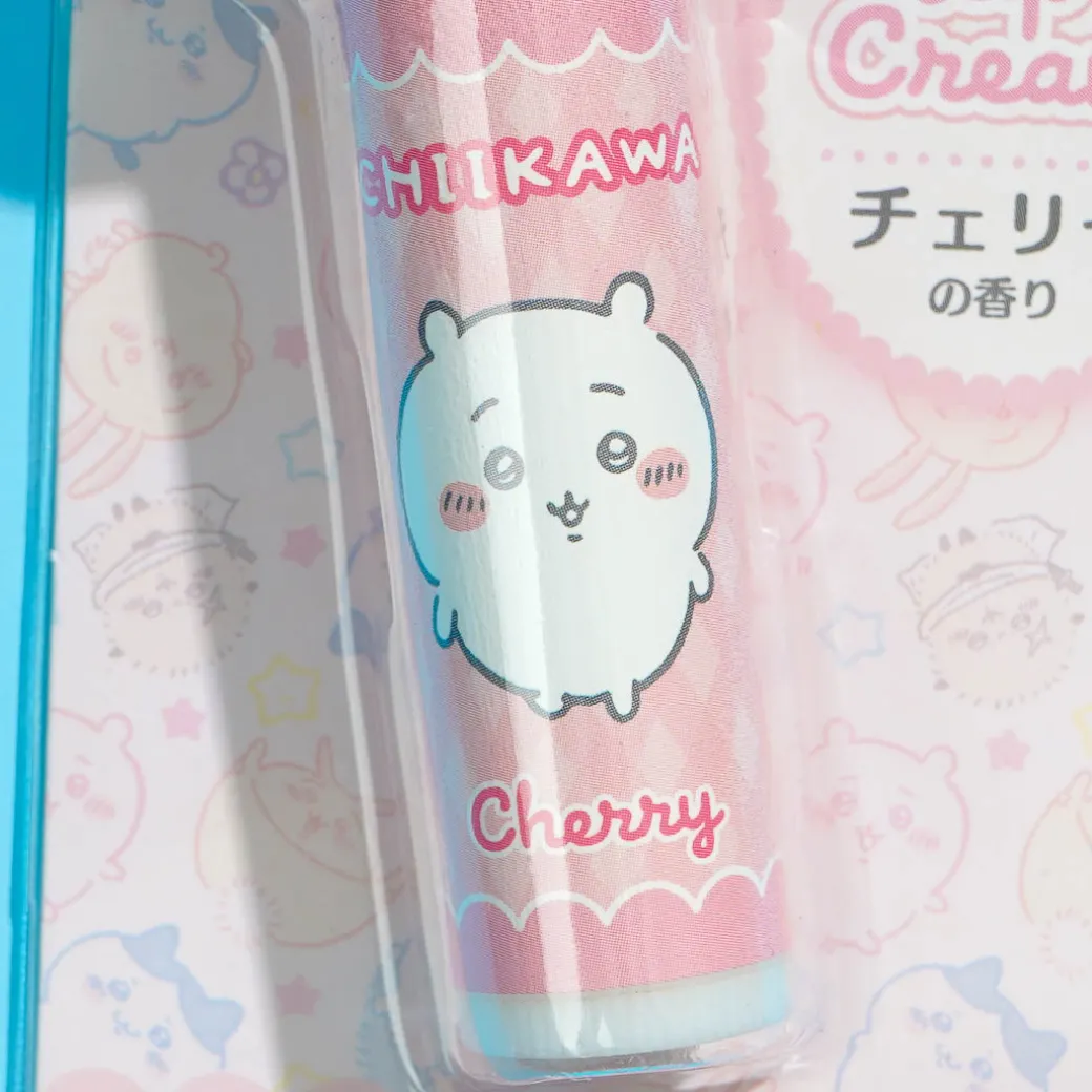 This cute tube of lip cream features prints of Chiikawa! It also has a cute Chiikawa cap that you can use on other lip balm tubes. Keep your lips nice and hydrated with this tube of cream made with moisturizing shea butter.