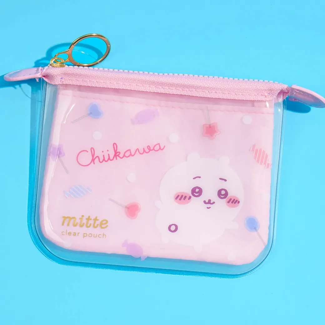 Store lipstick and other knick-knacks inside this super cute mini flat pouch. It features a print of Chiikawa playing around! This pouch has a metal ring zipper, and it has an outer pocket and an inner pocket for you to use.