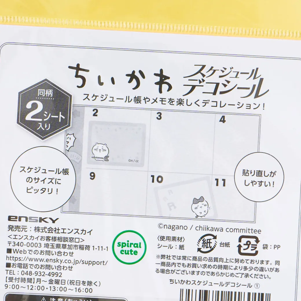 Mark dates on your calendar with the help of this cute set of scheduling deco stickers. It features prints of cuties from the manga, Chiikawa! This pack of deco stickers has 2 sheets of the same design.