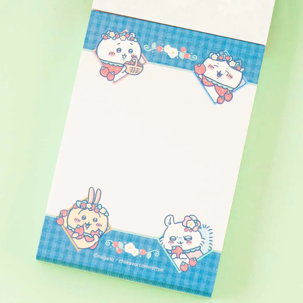 This super kawaii memo pad showcases prints of Chiikawa characters having a fun strawberry party. Use this memo pad to jot down important notes and reminders!