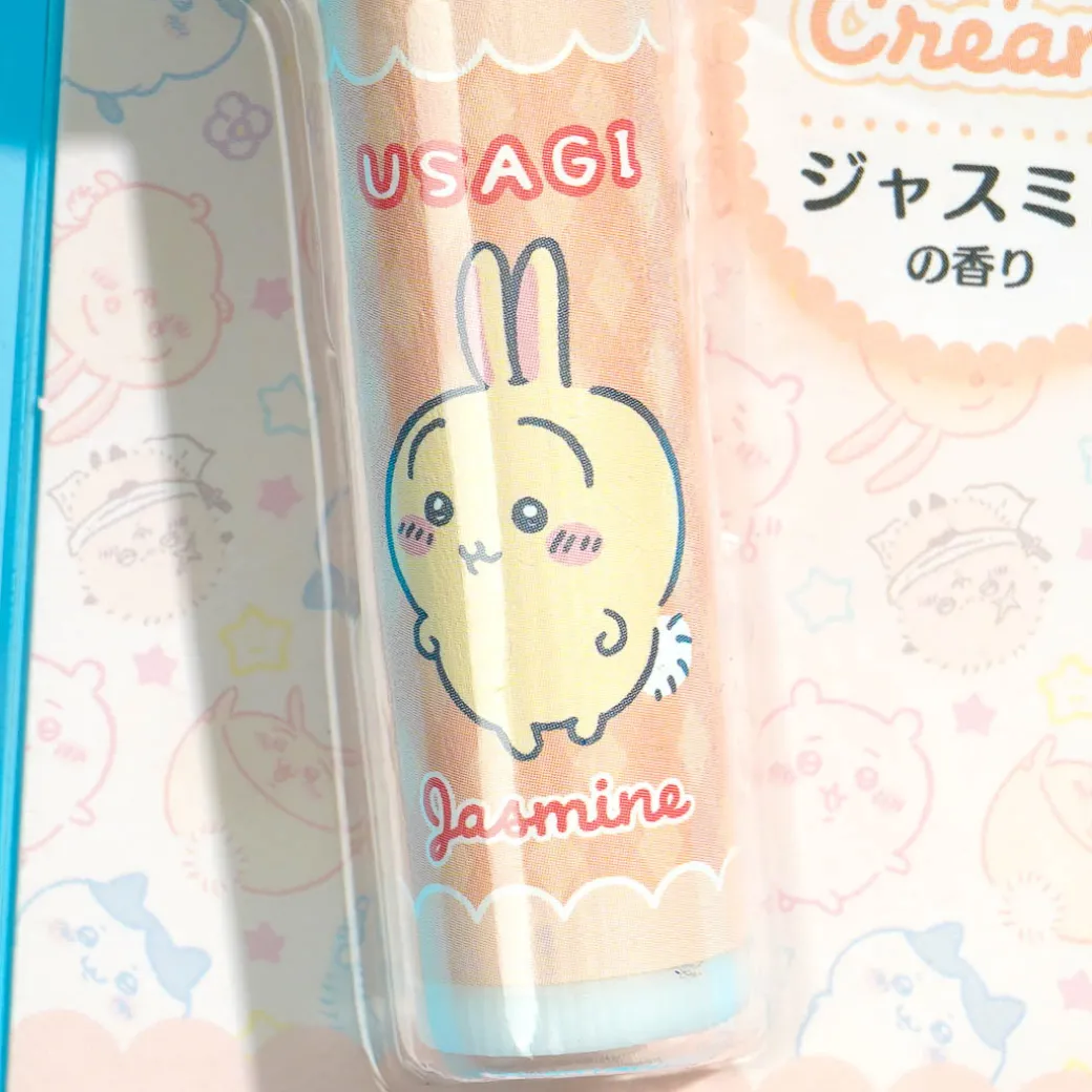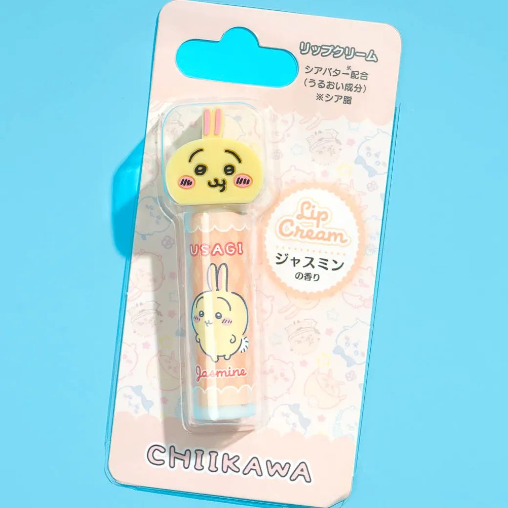 Add this tube of lip cream to your beauty kit. Not only does it feature a print of the Chiikawa character Usagi, but it also has a cute Usagi cap! You can remove the cap and attach it to other lip balms as well. This lip cream is made from moisturizing shea butter.