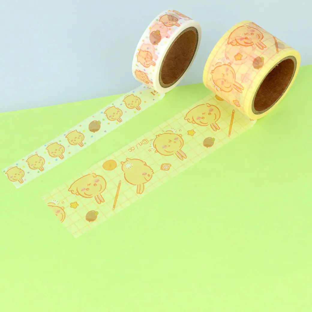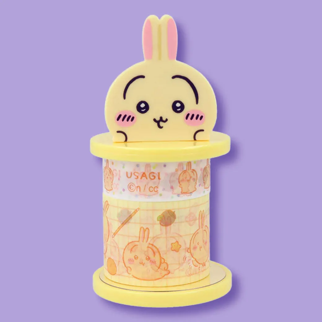 Add a splash of fun to your stationery with this kawaii tape holder set! It comes with a cute Usagi-shaped holder and two rolls of washi tape featuring prints of Usagi from the Chiikawa anime series.