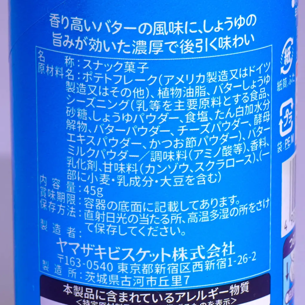 These butter & soy sauce flavored Chip Star potato chips from YBC come in a handy cylinder-shaped tube. With a resealable lid, they are easy to take with you without smashing the individual chips. Chip Star chips are available in various flavors throughout the year. Tasty!
