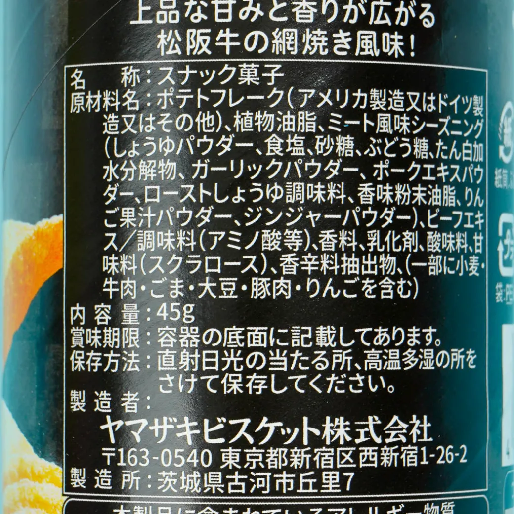 Munch on these delicious and perfectly crispy potato chips! Each piece is generously coated with seasoning featuring the elegant sweetness and aroma of grilled Matsusaka beef. These chips come in a handy cylinder-shaped tube with a resealable lid, making it easy to carry.