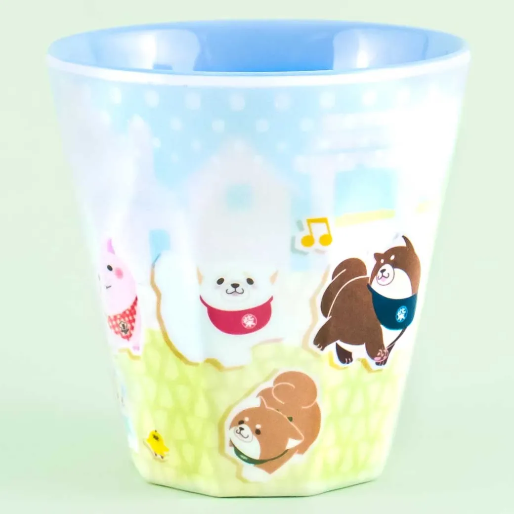 - A kawaii cup covered in prints of the Chuken Mochi Shiba playing outside