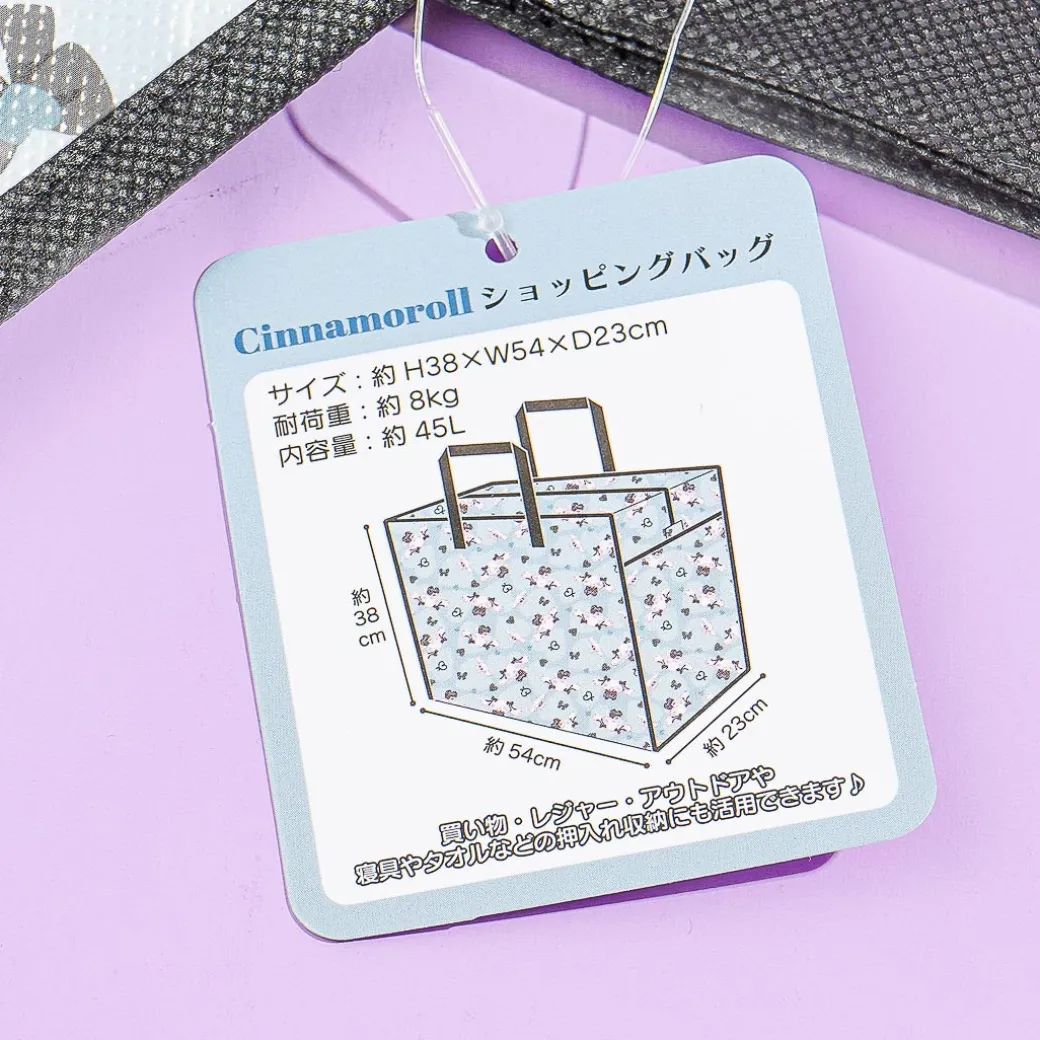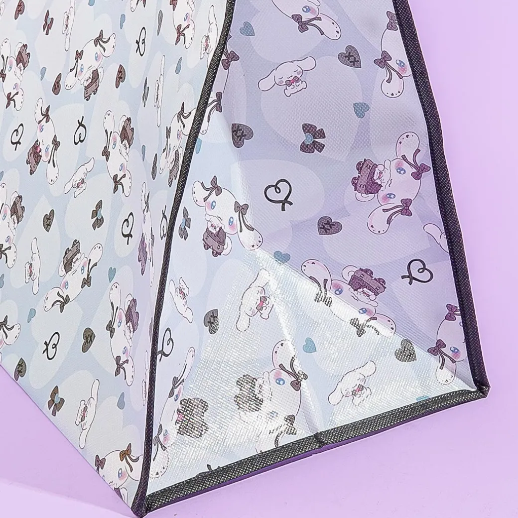 This super kawaii bag features illustrations of hearts, ribbons, and Cinnamoroll who looks like a Gothic Lolita doll. Use this roomy zippered bag when you travel or go on a picnic!