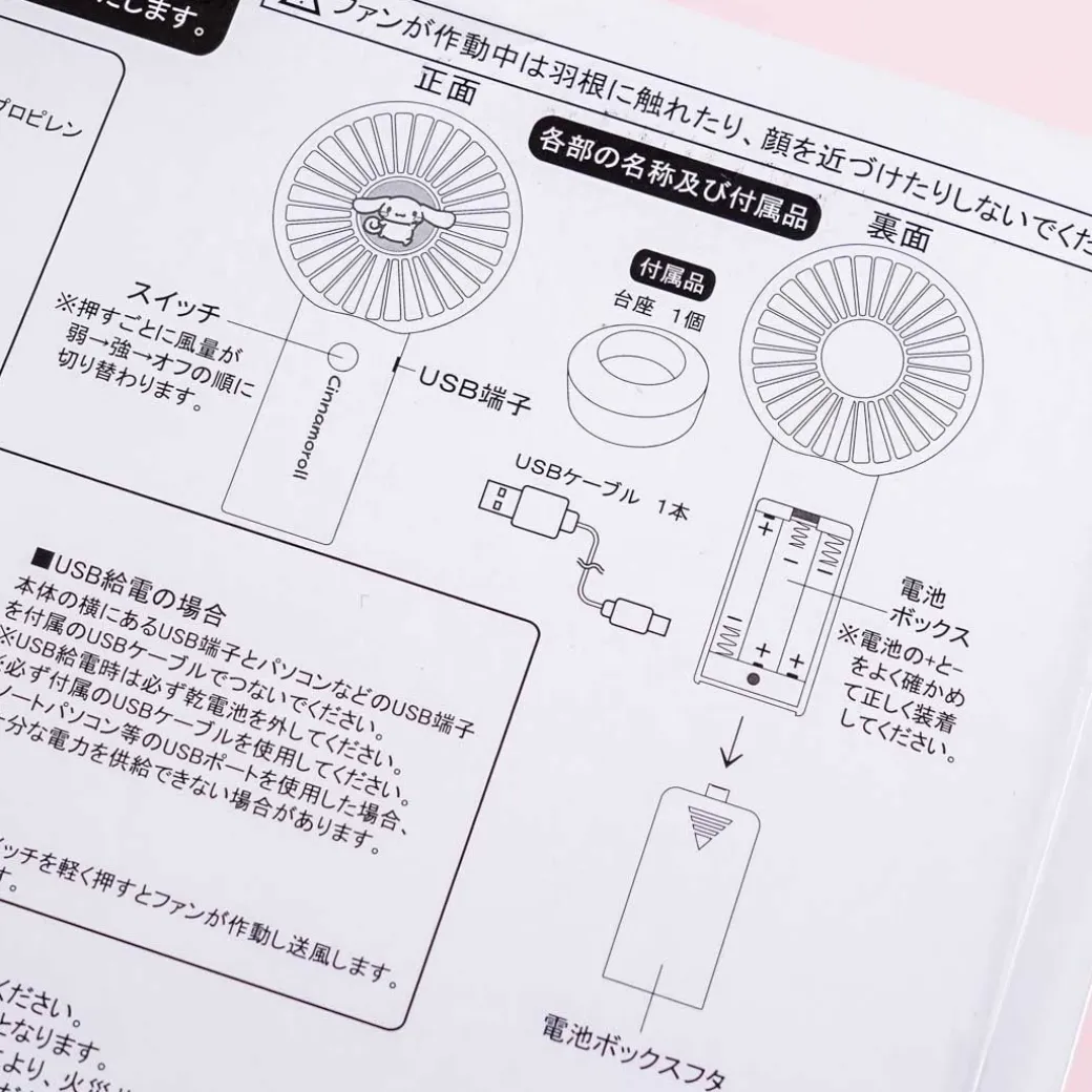 - A super cute Cinnamoroll portable fan set