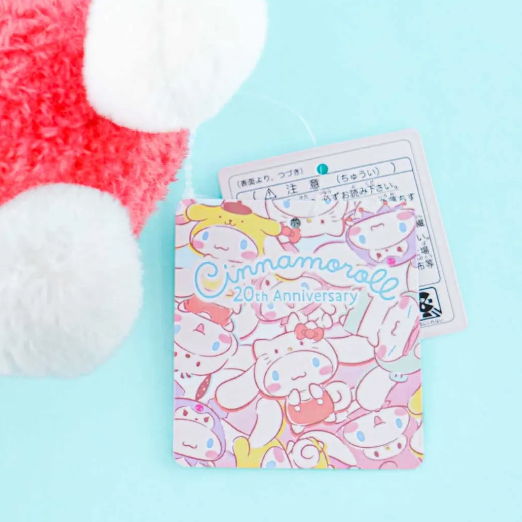 - A super kawaii medium-sized Cinnamoroll plushie wearing a Hello Kitty costume