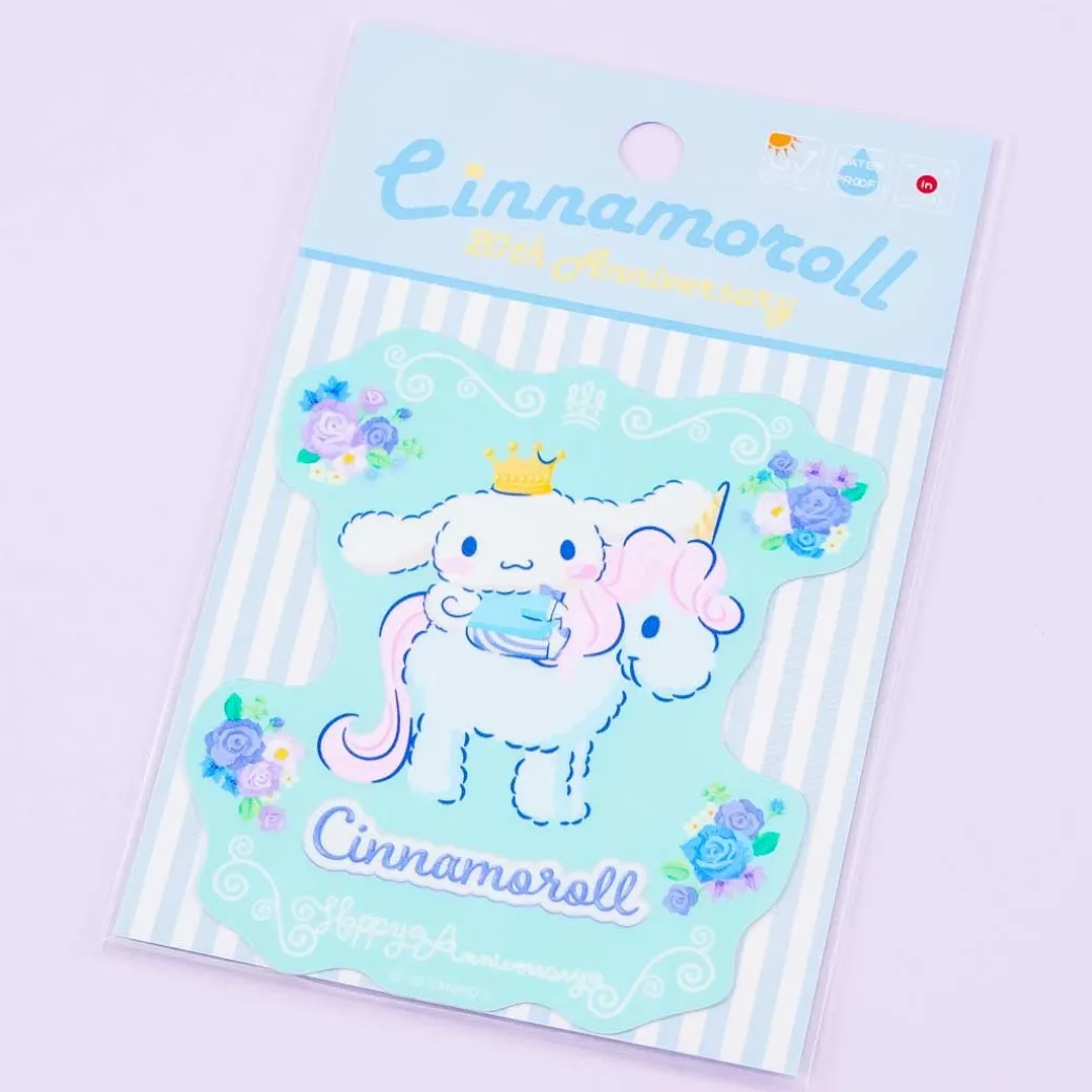 - A kawaii die-cut sticker featuring Cinnamoroll and Corne