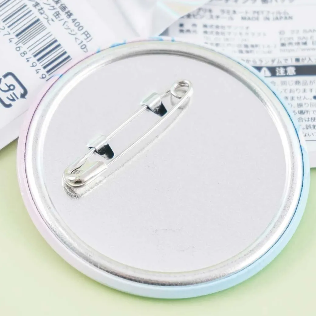 - A kawaii can badge featuring a Sanrio Characters cutie wearing a Cinnamoroll hat