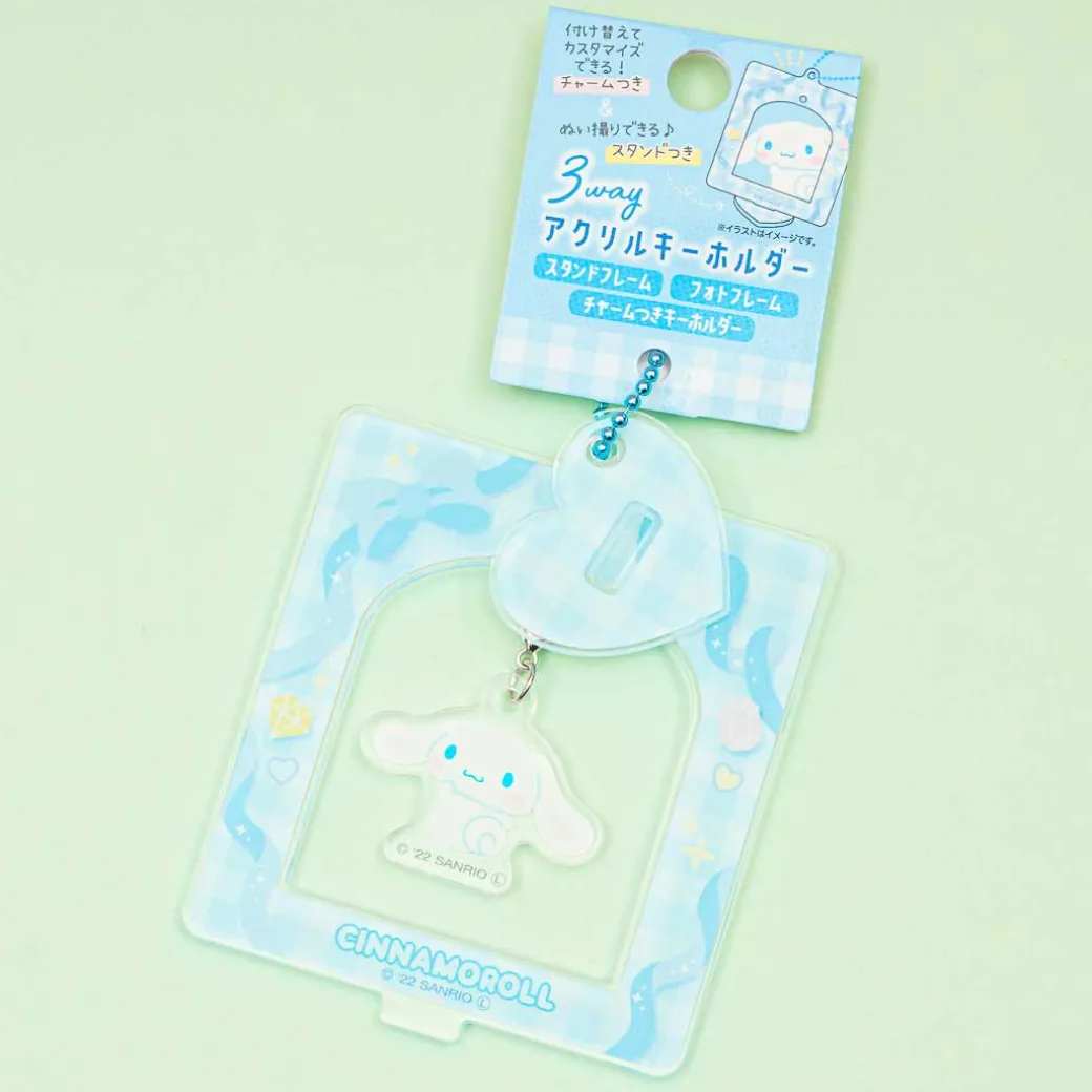 Attach this kawaii Cinnamoroll acrylic charm to liven up your plain sling bag! You can also separate the parts and use them either as a cute desk stand or as a photo frame.