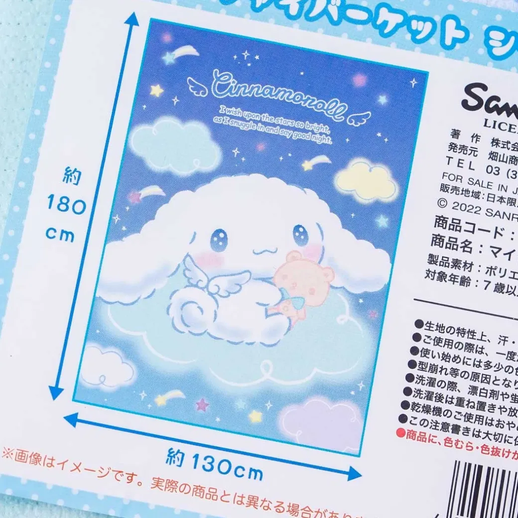 - A super kawaii smooth microfiber blanket featuring a print of angelic Cinnamoroll on a cloud