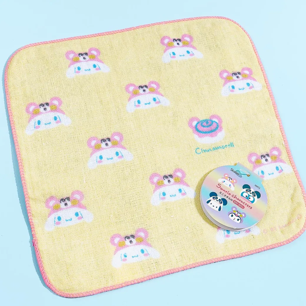 Use this mini towel to keep sweat off your face! It’s decorated with super cute prints of Cinnamoroll wearing a kawaii bear hat all over.