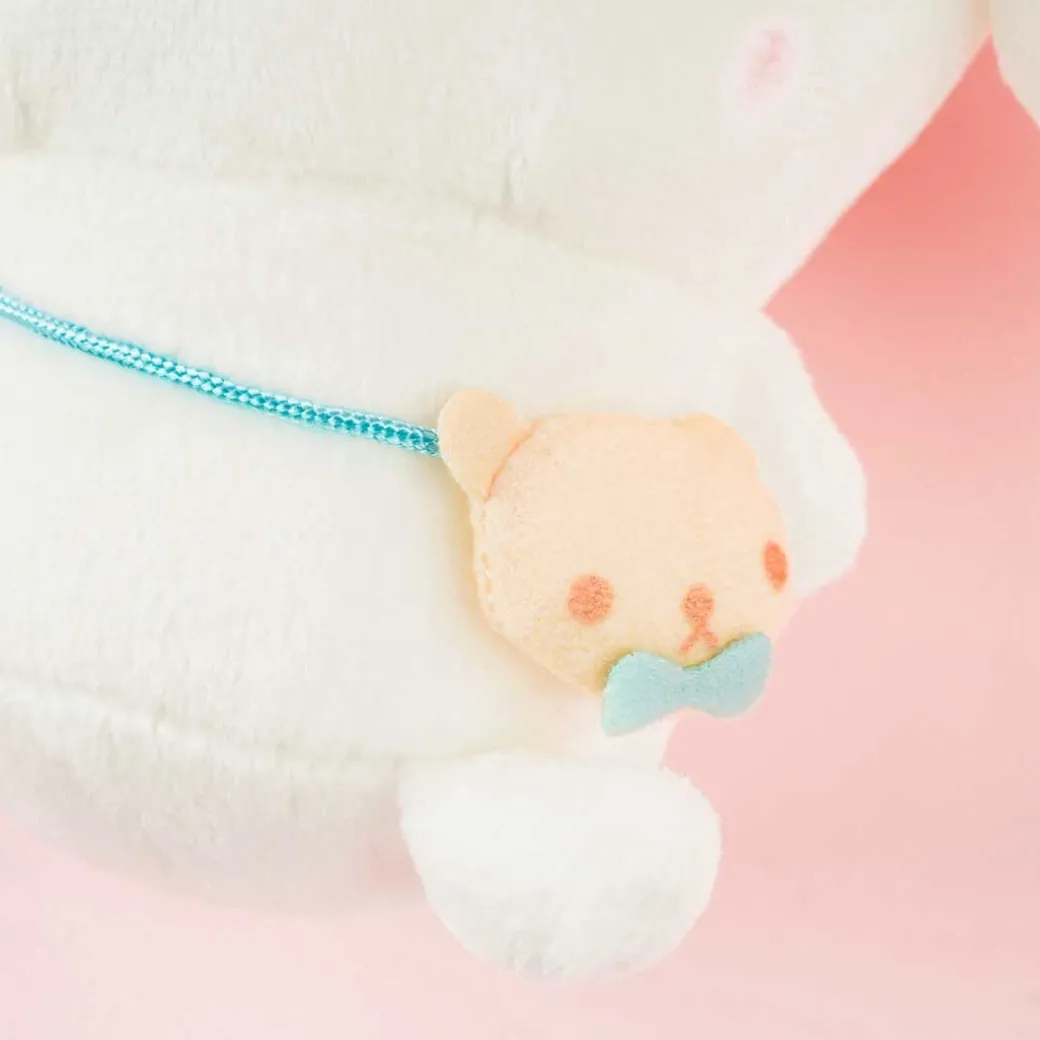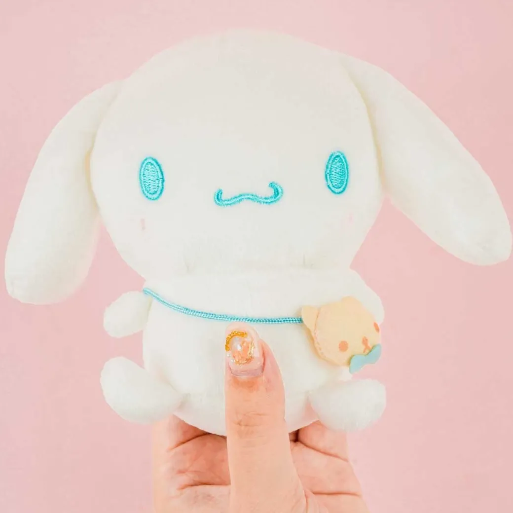 - A super soft blushing Cinnamoroll plushie that can sit down on its butt