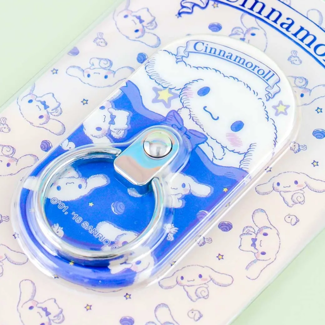 - A smartphone ring holder with illustrations of Cinnamoroll wearing a bow tie