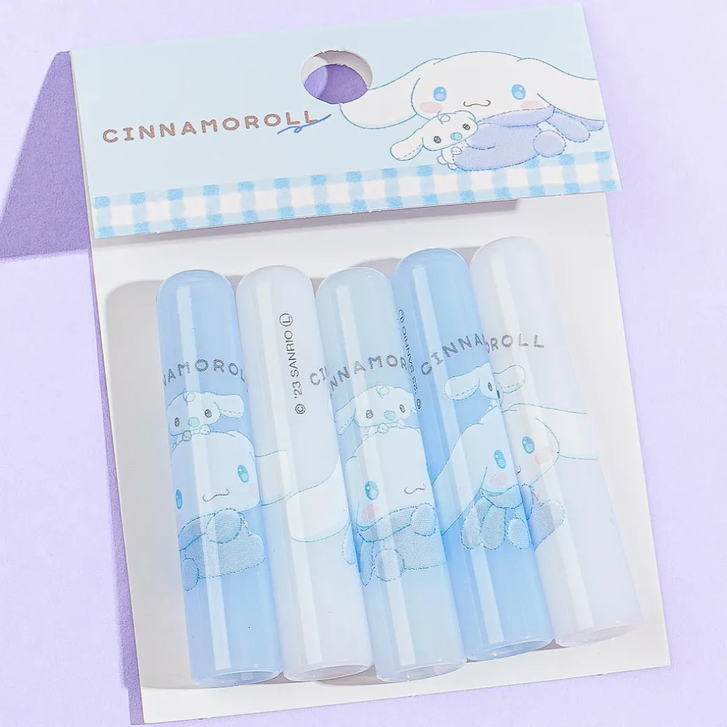 This cute set of pencil caps is illustrated with Cinnamoroll wearing a bunny outfit while playing with his buddy, Milk. Use it to protect the tips of your pencils!