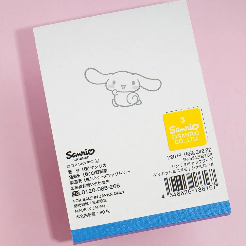 Use this kawaii die-cut memo pad to write down important reminders. It showcases a print of Cinnamoroll showing off his cute little butt!