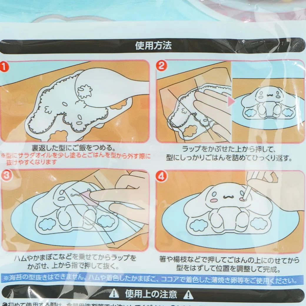 Make the perfect chara bento with this cute Cinnamoroll rice mold. Just follow the instructions at the back of the pack to make the perfect Cinnamoroll rice ball.