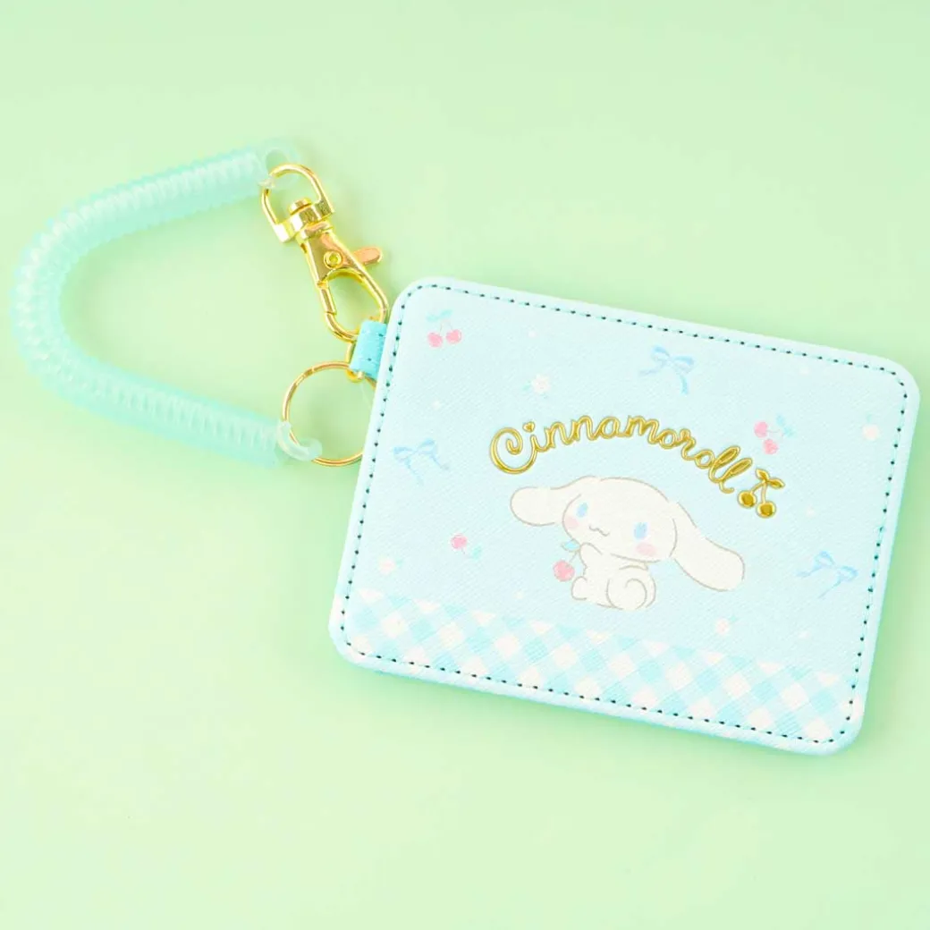 This kawaii card storage has cute illustrations of Cinnamoroll surrounded by lots of ribbons and cherries! Use this to keep your ID or train card safe. It has a plastic coil strap with a metal hook and keyring.