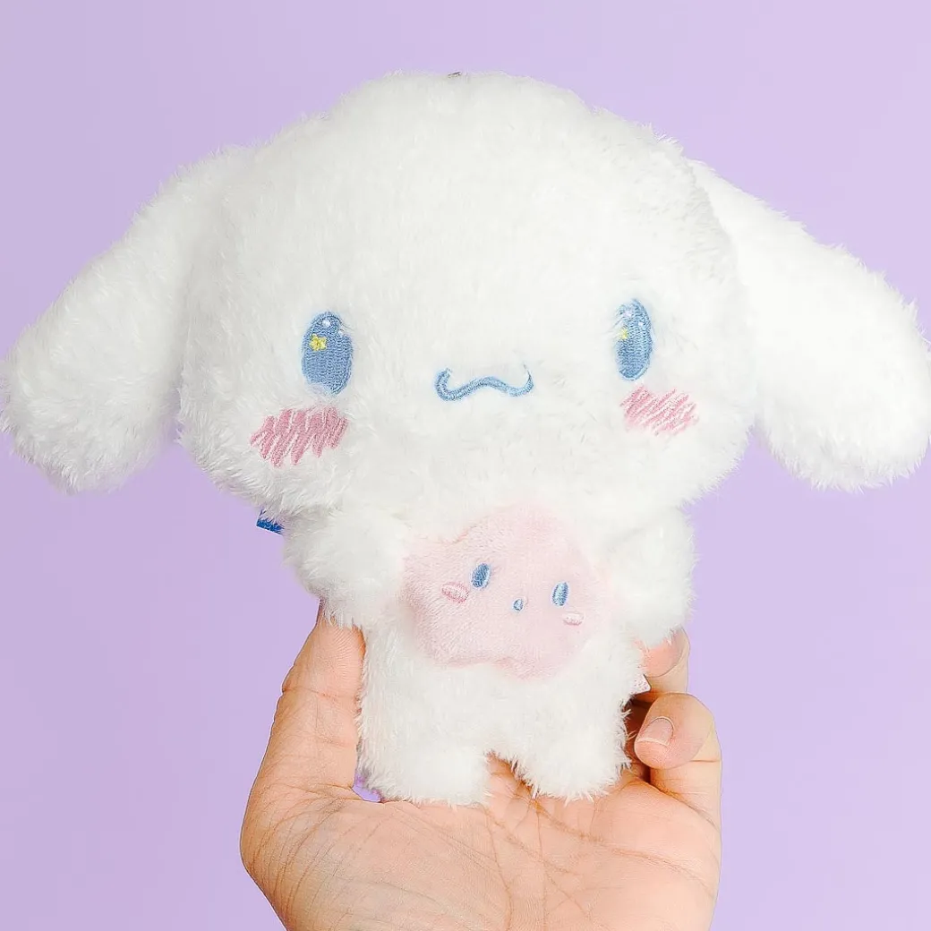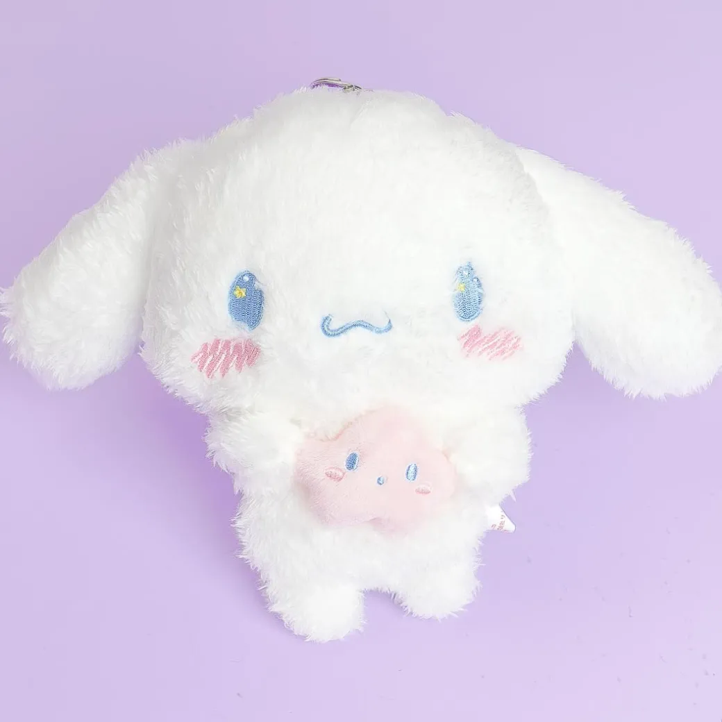 Bring your ID or bus pass kawaii-style with this super cute case! It looks like a Cinnamoroll plushie holding his friend Poron. This features a metal hook and a transparent card pocket at the back.