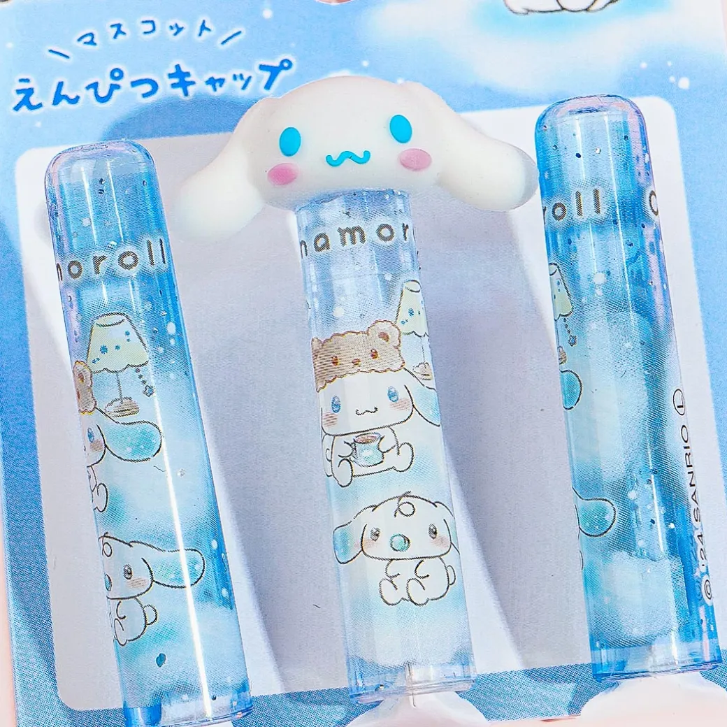 This super kawaii set of pencil caps is illustrated with Cinnamoroll hanging out with his friends among the clouds. Use them to keep your pencil tips from breaking! One of the pencil caps has a cute Cinnamoroll decor.