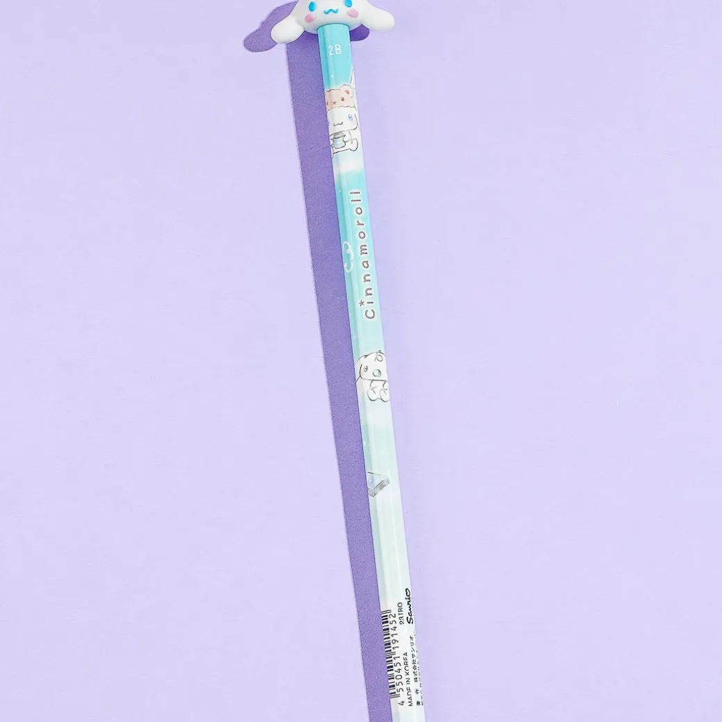 This cute 2B pencil features prints of Cinnamoroll having fun with his friends among the clouds. Use it to practice sketching and scribbling! It has a kawaii Cinnamoroll topper.