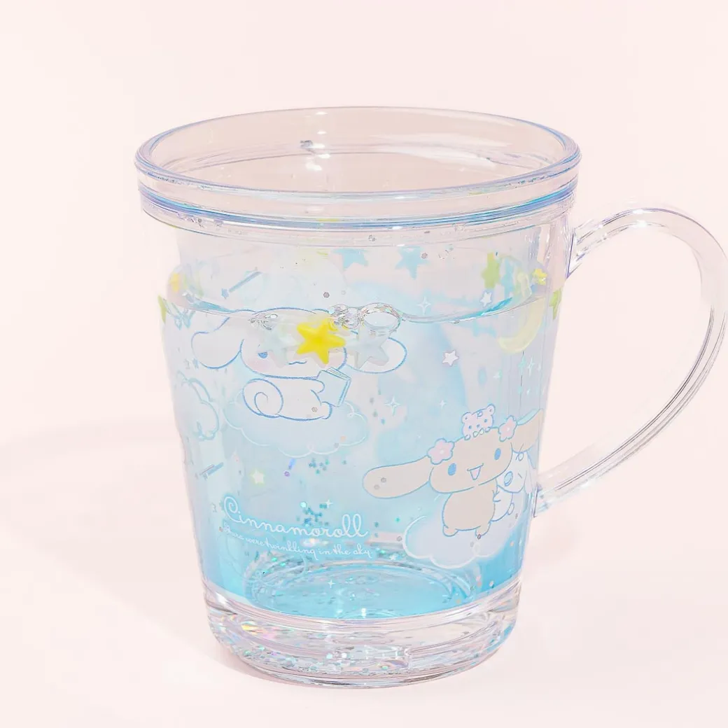 This clear waterfill cup has a special double wall that has floating stars and glitter inside! It’s decorated with super cute illustrations of Cinnamoroll and his besties hanging out among the fluffy clouds. Use this cup whenever you want to hydrate yourself more.
