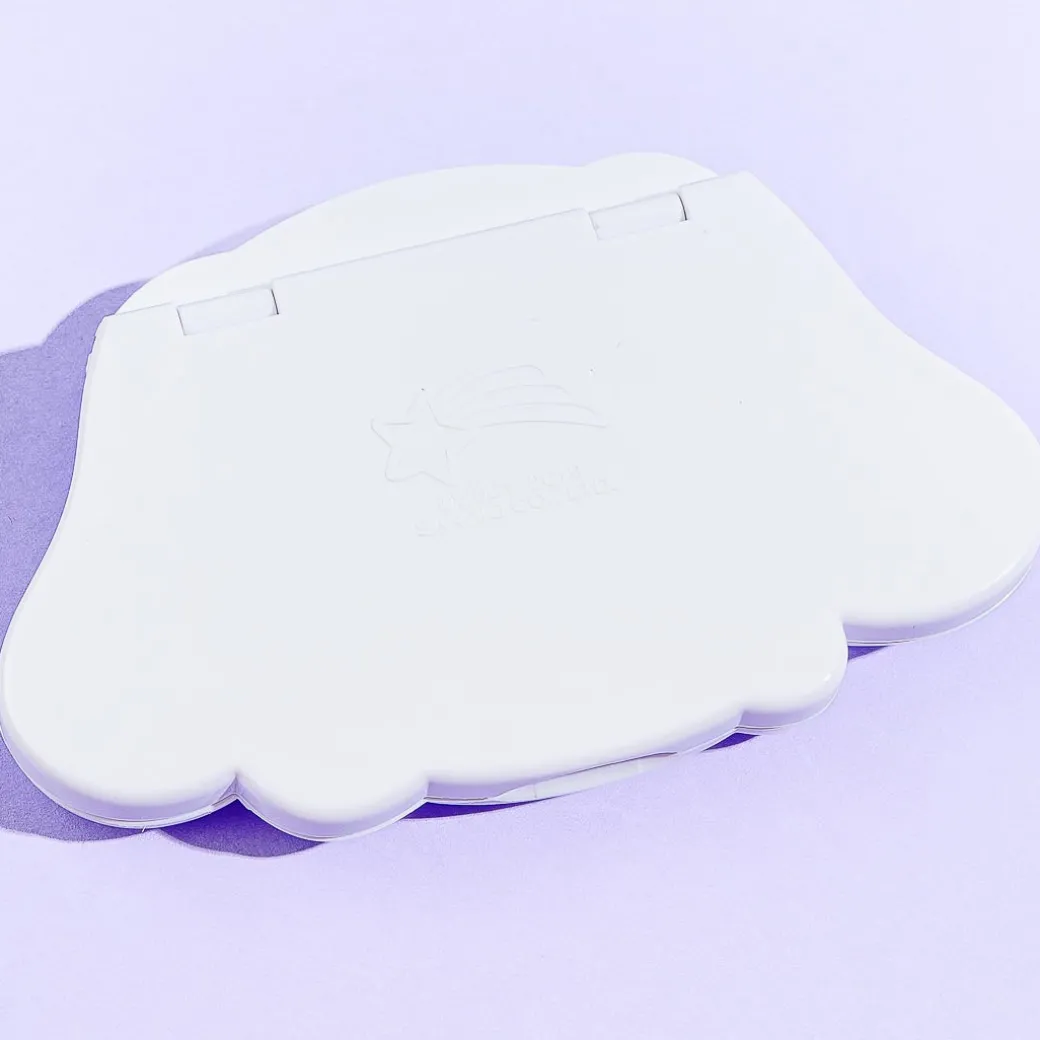 Bring this super kawaii mirror and comb set anywhere you go for quick touch-ups! The set comes with a Cinnamoroll-shaped plastic case with a mirror and comb inside.