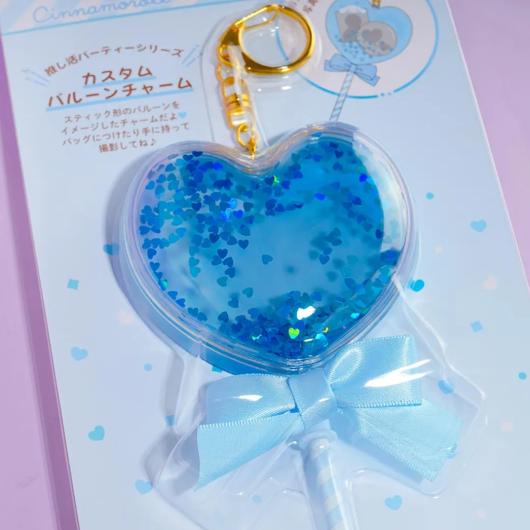 This cute heart-shaped balloon charm has a small print of Cinnamoroll and a lot of glitter. You can customize the charm by adding your photo inside it! Use it to decorate your favorite bag or pouch.