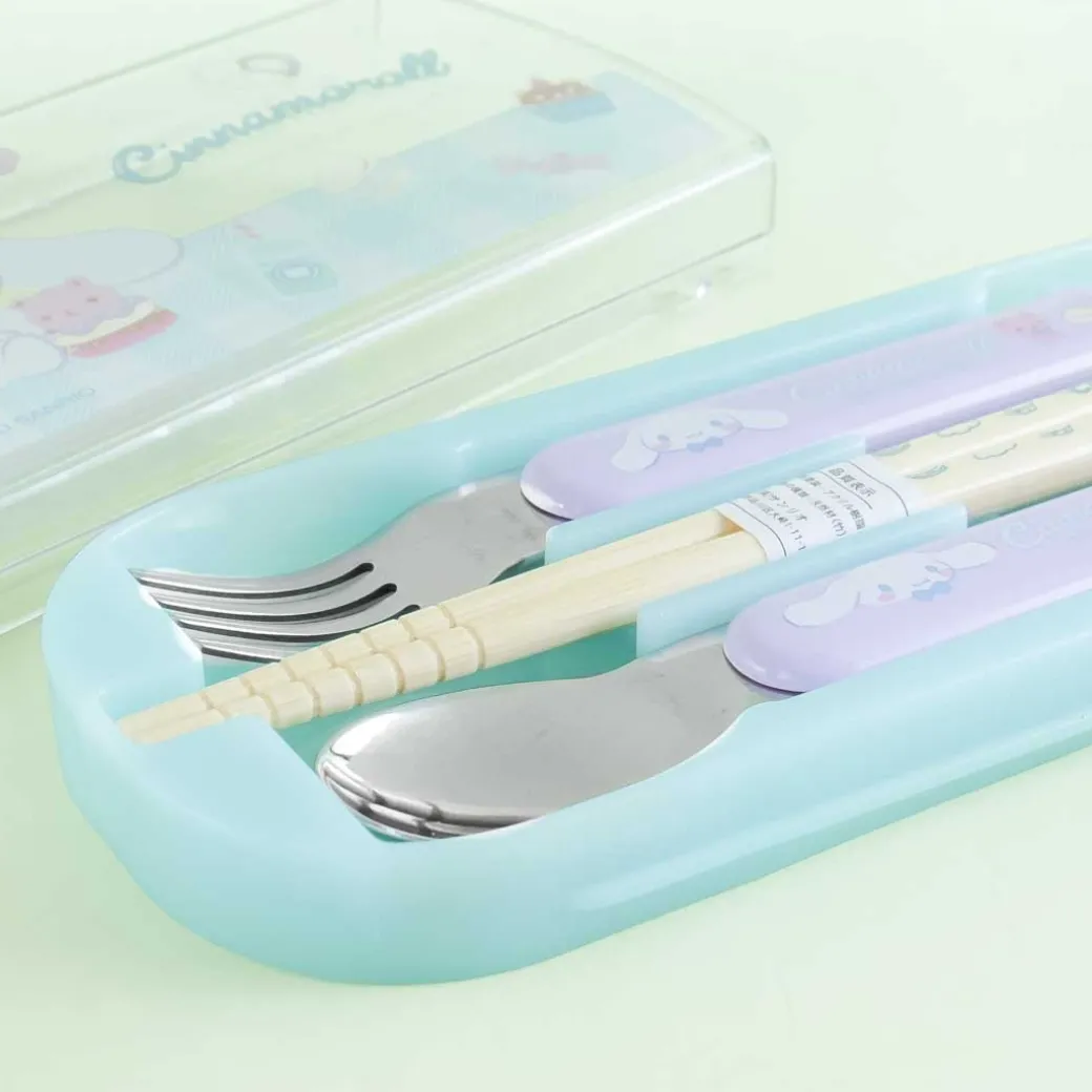 - A super cute utensil set featuring prints of Cinnamoroll enjoying desserts