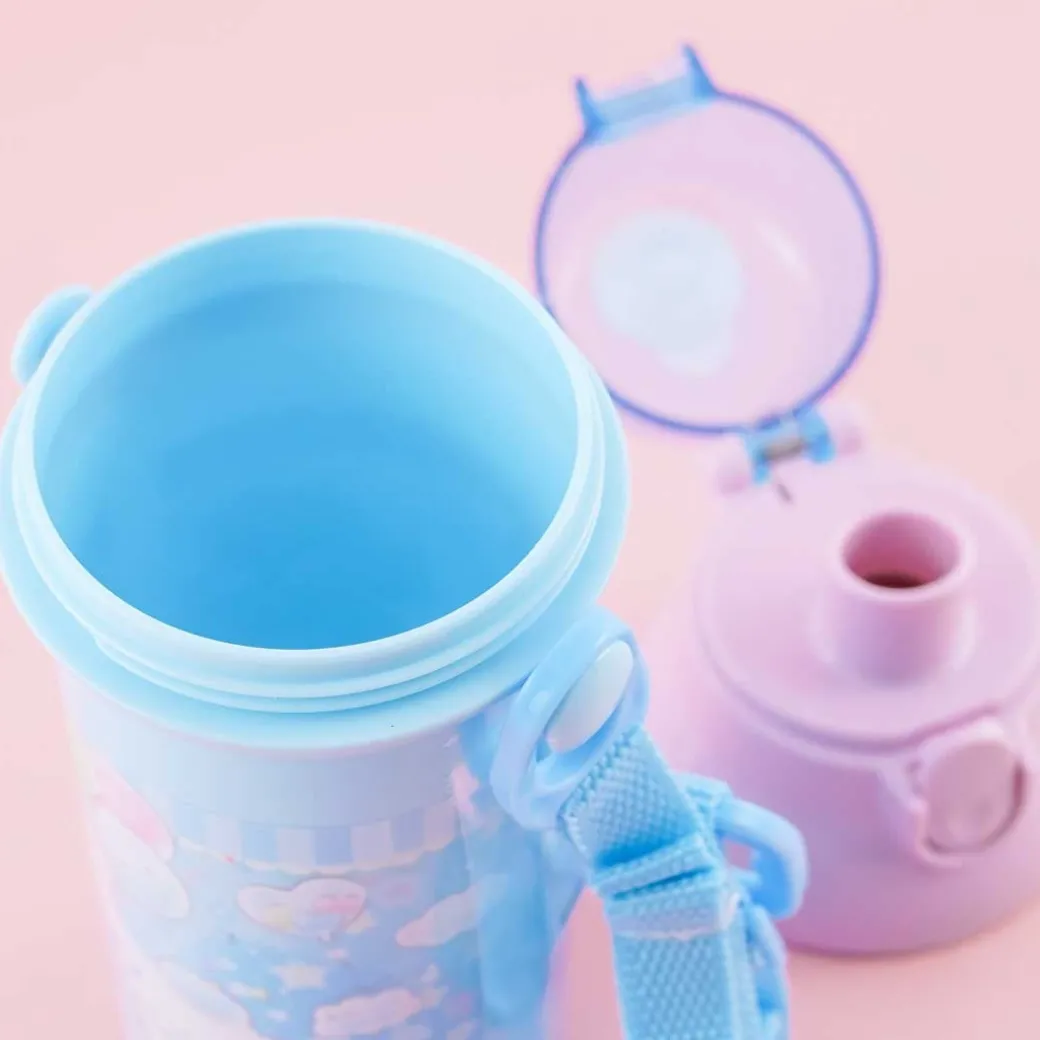- A kawaii water bottle illustrated with Cinnamoroll and balloons