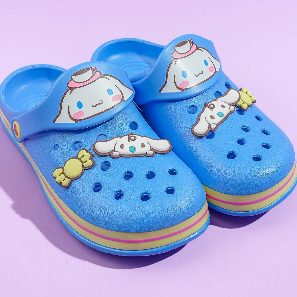 Have fun walking around your apartment using these super cute large slippers! The cute pair is decorated with prints of Cinnamoroll and has rubber charms of candies and his bestie, Milk! These kawaii sandals are made from special EVA or rubber-like synthetic resin material.