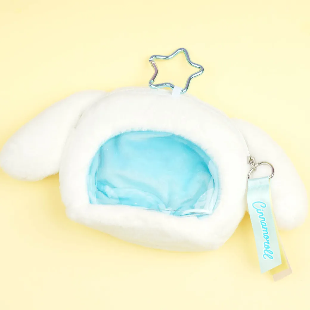 Store your cash, loose change, and train card inside this kawaii and fluffy Cinnamoroll face plushie pouch! It even has a unique transparent window at the back so you can check your stuff without opening the soft case.