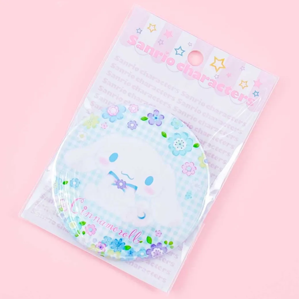 - A cute badge illustrate with Cinnamoroll surrounded by flowers