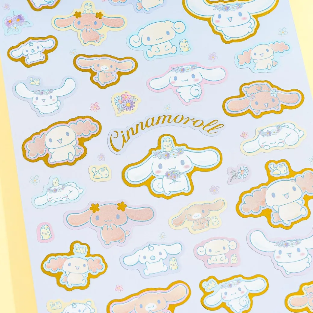Decorate your notebook with this cute sheet of stickers. It features prints of Cinnamoroll playing with flowers with his friends! Use it to embellish your journal and planner.