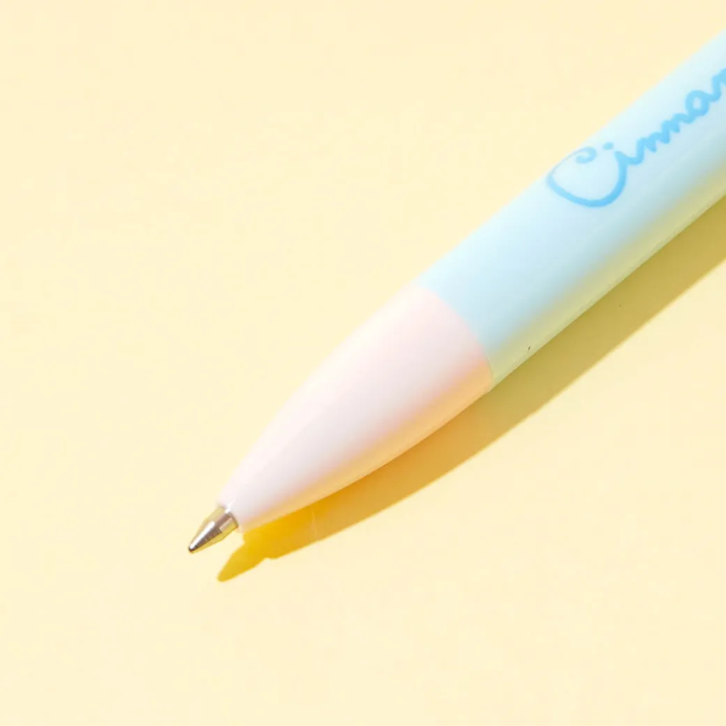 Bring this super cute 2-in-1 pen to school! It showcases a die-cut charm that looks like a Cinnamoroll plushie. This pen comes with two ink colors and also functions as a mechanical pencil.