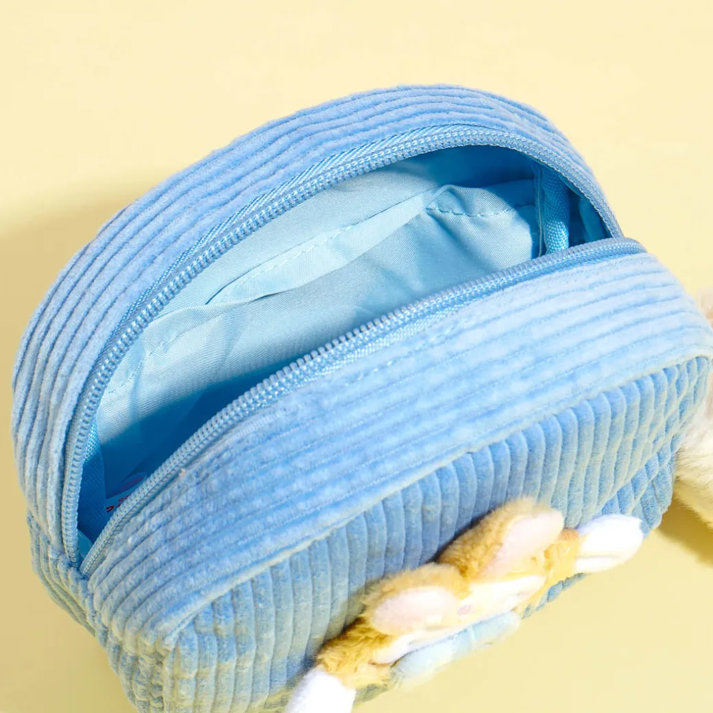 This kawaii pouch showcases an embroidered 3D design of Cinnamoroll wearing a rabbit head dress! It comes from the Sanrio Forest Animals series. Use this pouch to store your charms, trinkets, and other things.