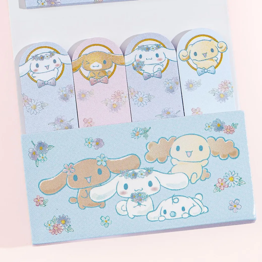 Mark important pages on your textbook by using these sticky notes! Both the square-shaped and tab-shaped sheets are decorated with kawaii prints of Cinnamoroll and friends surrounded by lovely spring flowers.