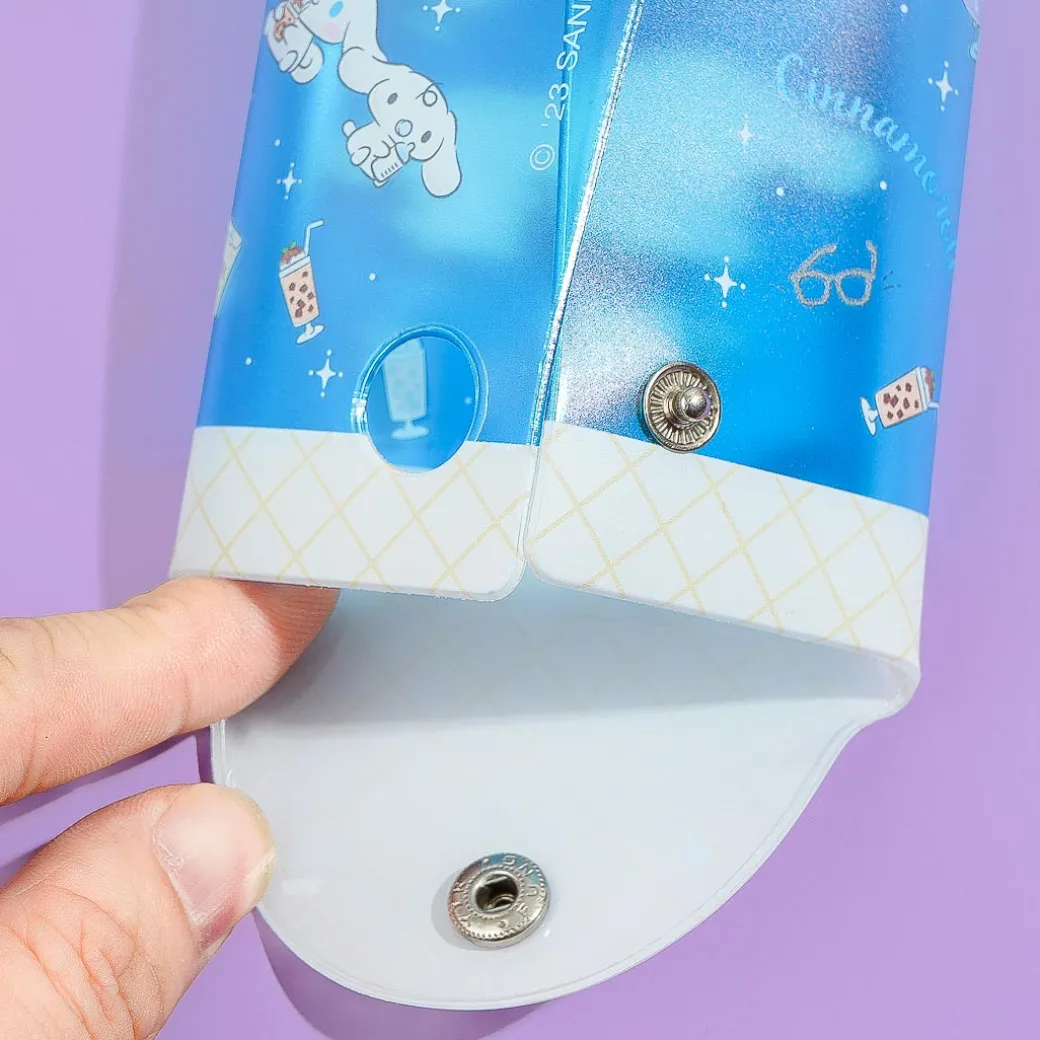 Keep your hair ties and charms inside this kawaii multi-case. It’s decorated with prints of Cinnamoroll hanging out with his buddy, Milk! This multi-case has a metal button closure to keep your things safe and secure.